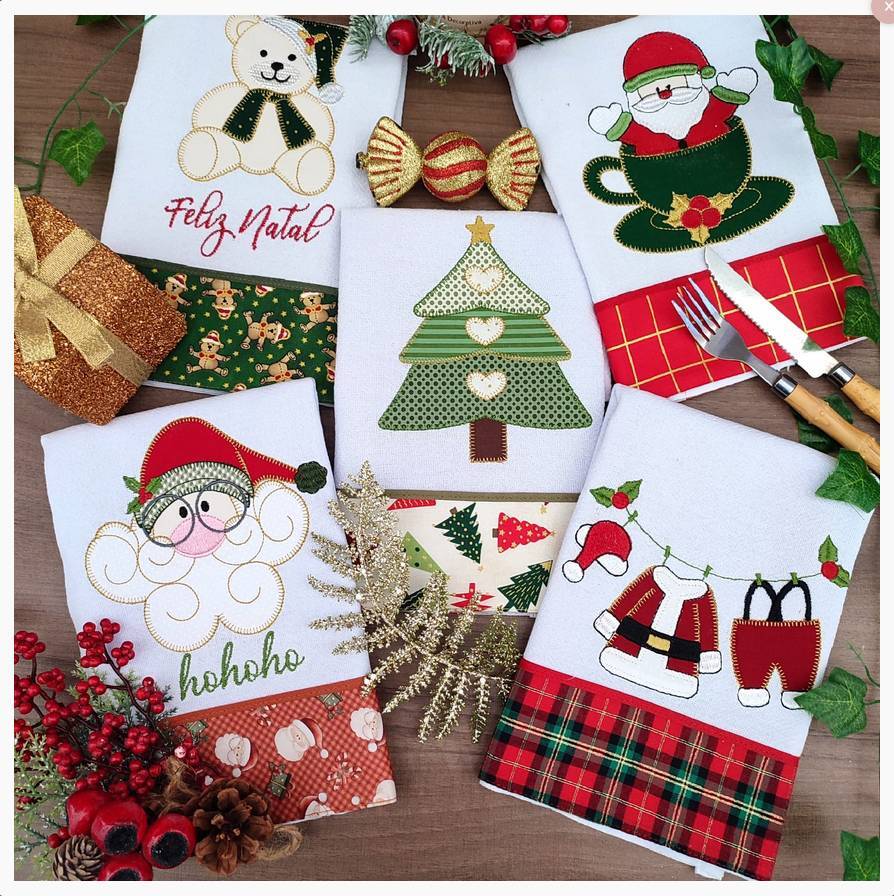 Pano de Prato Copa Natalinos Bordados Nicoly 65x44cm